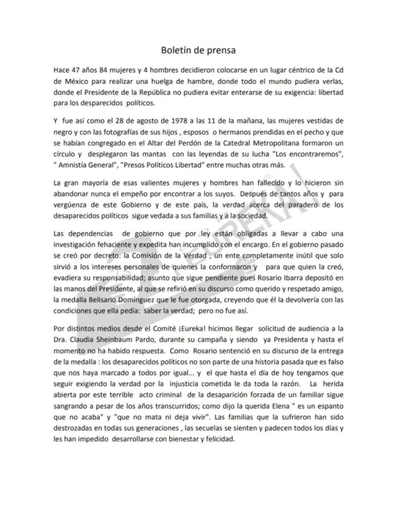 Comunicado del Comité ¡EUREKA! marzo 19, 2026 No hay comentarios Comunicado del Comité ¡EUREKA!, ante la demolición del complejo policial de Tlacoaque reconocido como sitio de memoria el 2 de octubre del 2022. Leer más »